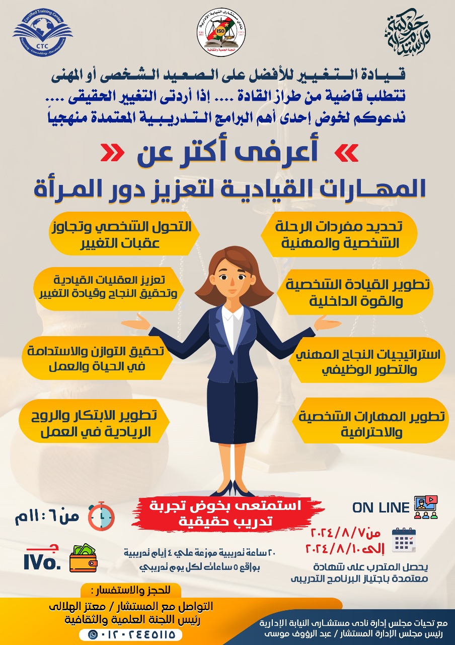 فى إطار استراتيجية اللجنة العلمية والثقافية بنادى مستشارى النيابة الإدارية الهادفة إلى إعداد كوادر قضائية قادرة على القيادة والإدارة فى ظل المتغيرات العصرية .