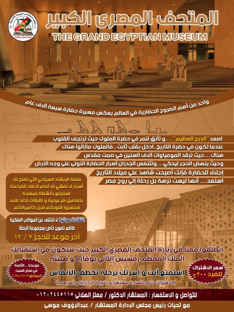 انطلقوا معنا في زيارة المتحف المصري الكبير حيث سيكون في استقبالك الملك المعظم رمسيس الثاني بوقاره و هيبته